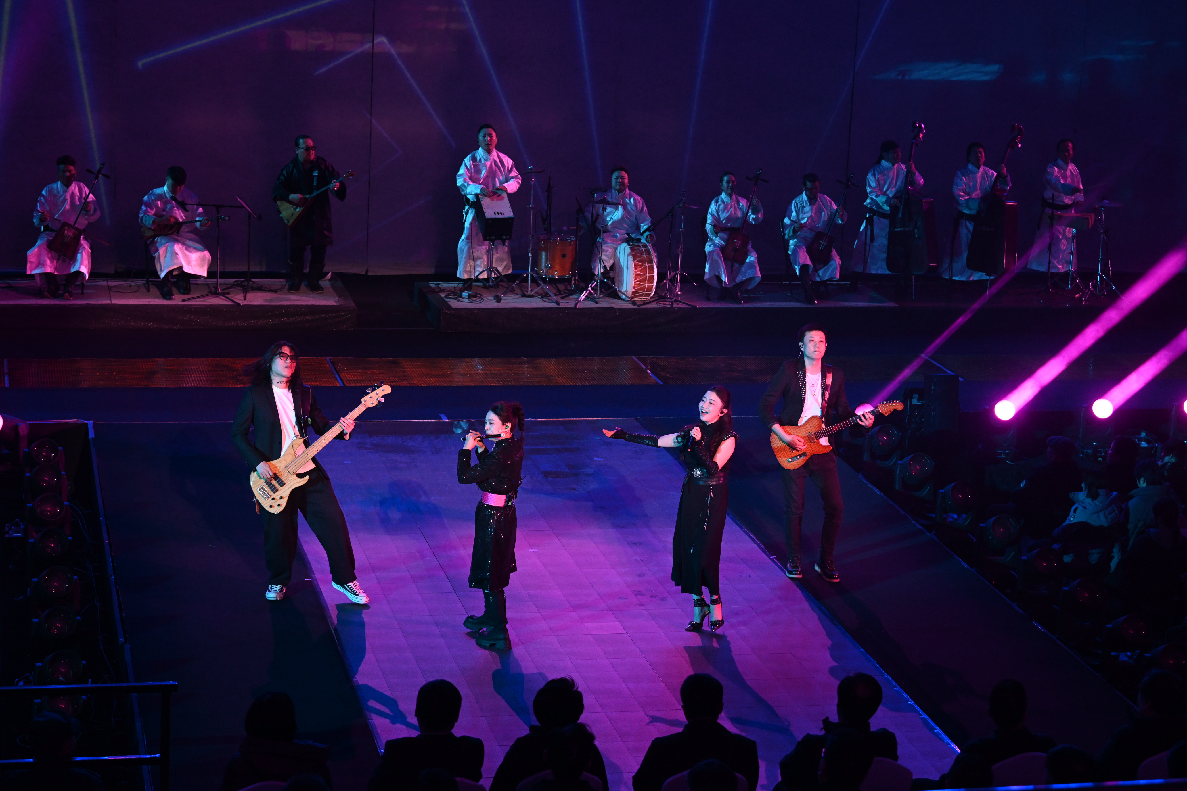 音樂會以馬頭琴這一蒙古族標志性樂器為主奏,精選《鴻雁》《敖包相會》等耳熟能詳?shù)拿窀杳?,巧妙融入呼麥、長調(diào)等非遺元素,同時創(chuàng)新實現(xiàn)與中國鼓、嗩吶、京胡及京劇韻味的跨界碰撞,在傳統(tǒng)與現(xiàn)代的交融中詮釋“民族的亦是世界的”藝術理念。